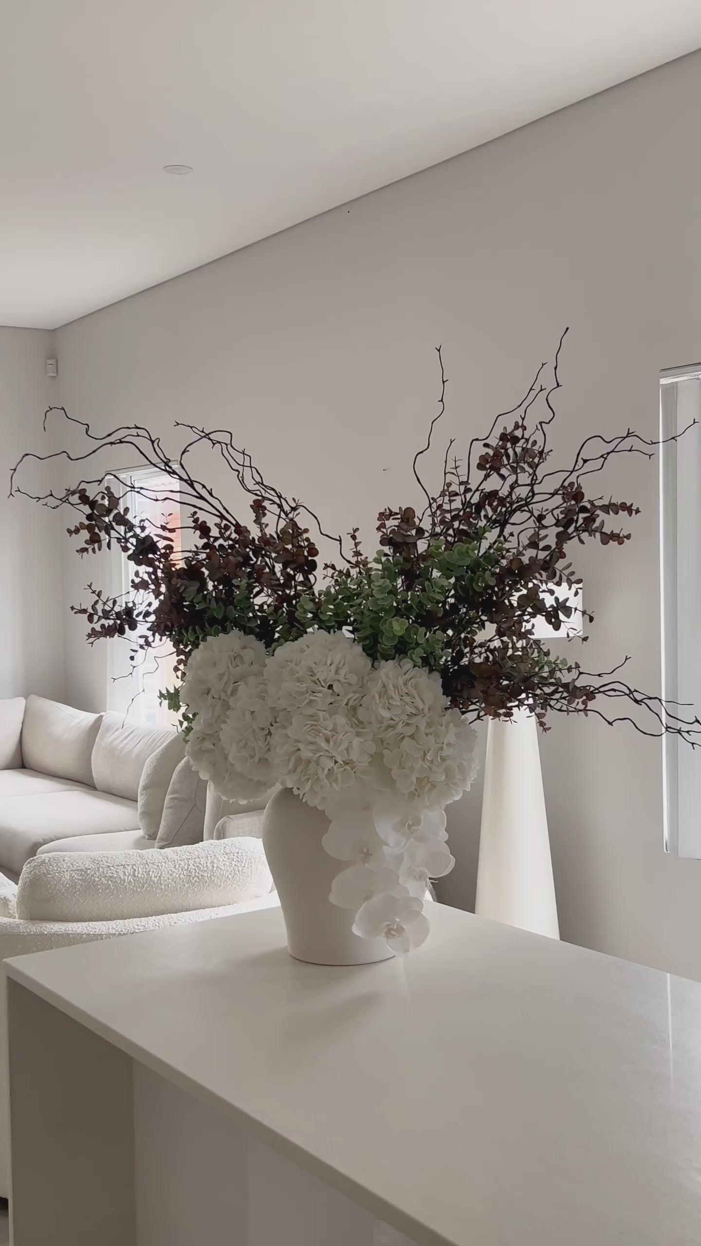 This stunning arrangement, featuring real-touch florals, embodies the essence of opulence and grandeur. Standing at an impressive 80cm in height and 90cm in width, this piece commands attention in any space. The elegant white flowers, gracefully cascading from the vase, are complemented by the intricate branches and lush greenery, creating a perfect balance of sophistication and natural beauty. The name “Opulentia” is a fitting reflection of this arrangement’s opulent and lavish presence, making it a true statement piece for any luxury setting.